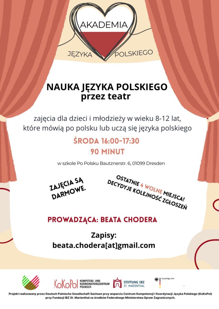 • Polnisches Abenteuer & Theater-Workshops: Wir führen unsere laufenden Kurse fort! Hier wird die Sprache spielerisch durch Bewegung, Rollenspiele und Kreativität zum Leben erweckt.